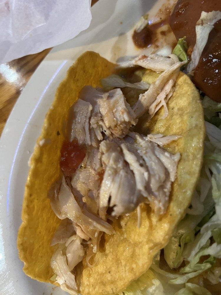 A crispy or soft taco with rice and refried beans. Beef or chicken.