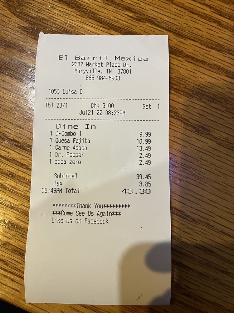 El Barril Mexican Grill in Maryville, TN offers a wide range of Mexican specialties, from Arroz con Pollo to Chimichangas and Enchiladas. The menu includes various appetizers like El Barril Dip and Jalapenos Rellenos, as well as flavorful fajitas options such as Molcajete and Veggie Fajitas. The restaurant provides a casual and friendly atmosphere, with outdoor seating available. Customers have praised the service, describing it as fast and efficient. The food is said to be authentic and delicious, with generous portions. Overall, El Barril Mexican Grill seems to be a great choice for those craving Mexican cuisine in the Maryville area.